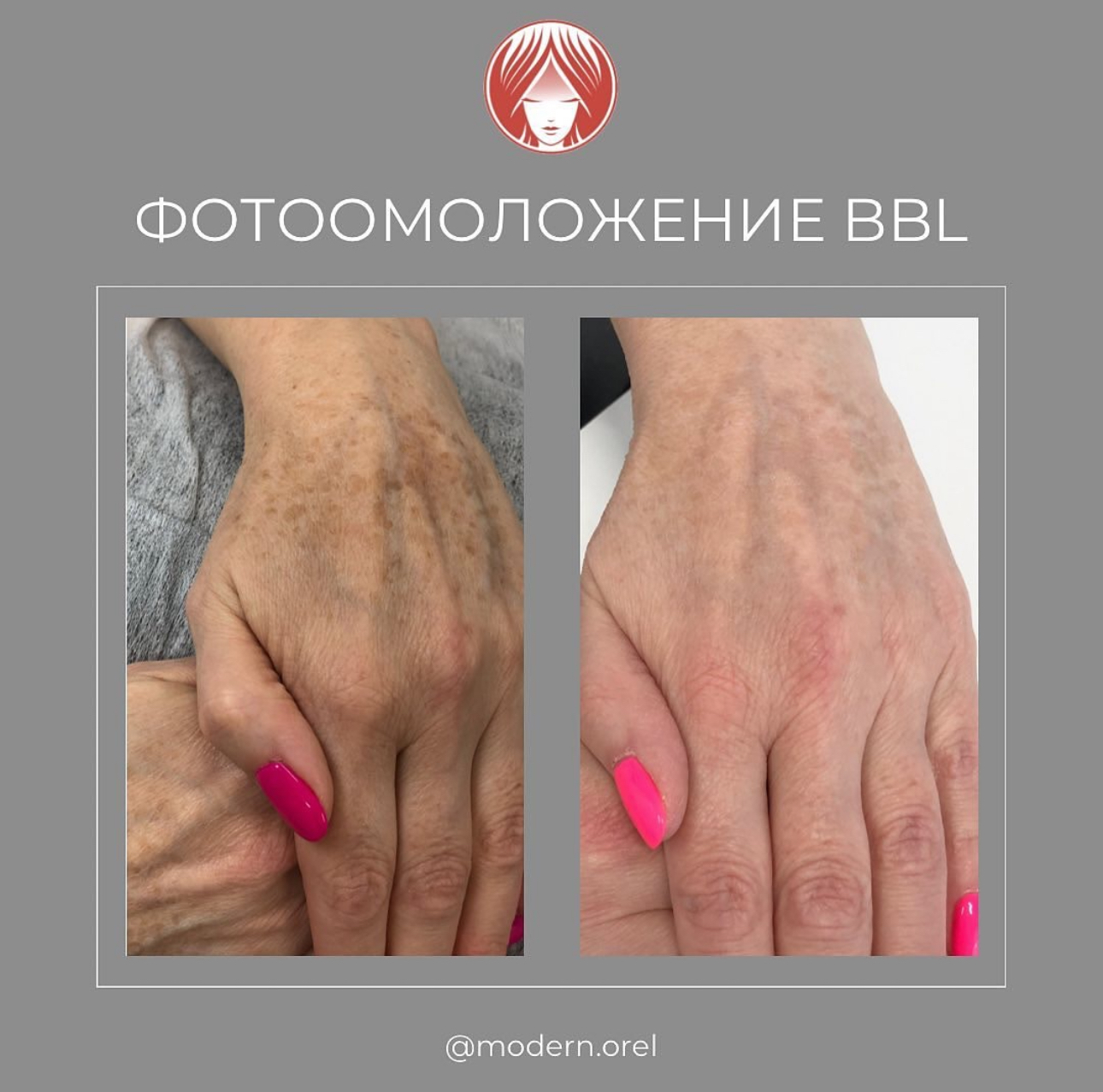 | A20.01.005 Фототерапия кожи. Фотоомоложение BBL - кисти рук, парная зона | 60 | 8000 | 20400 |